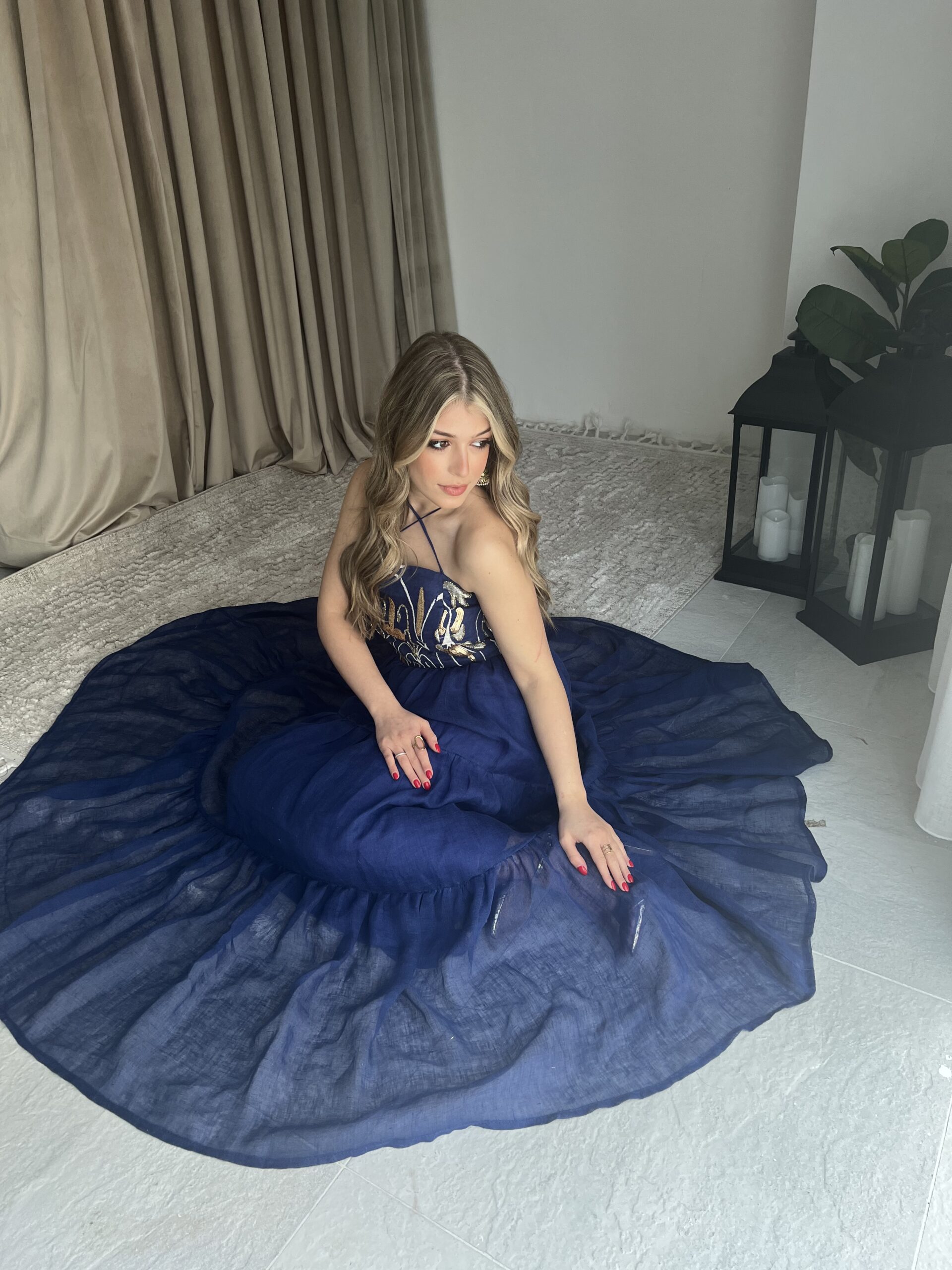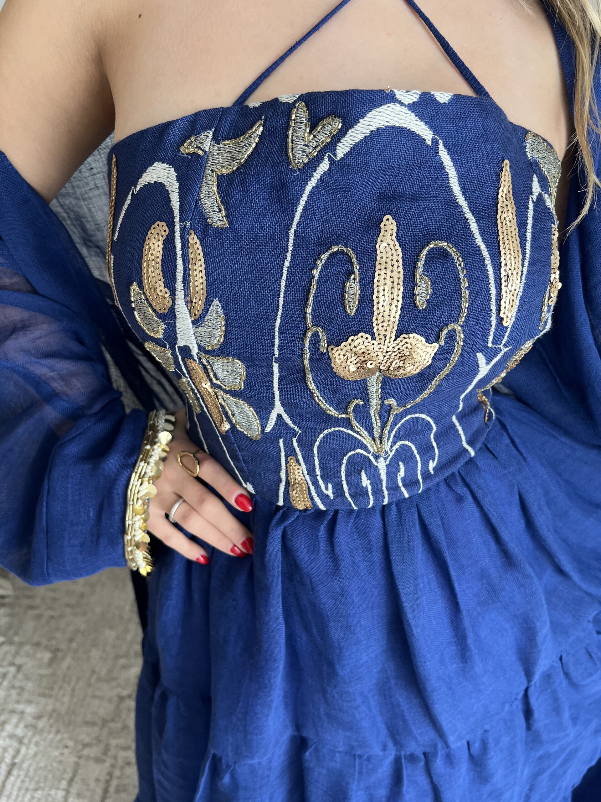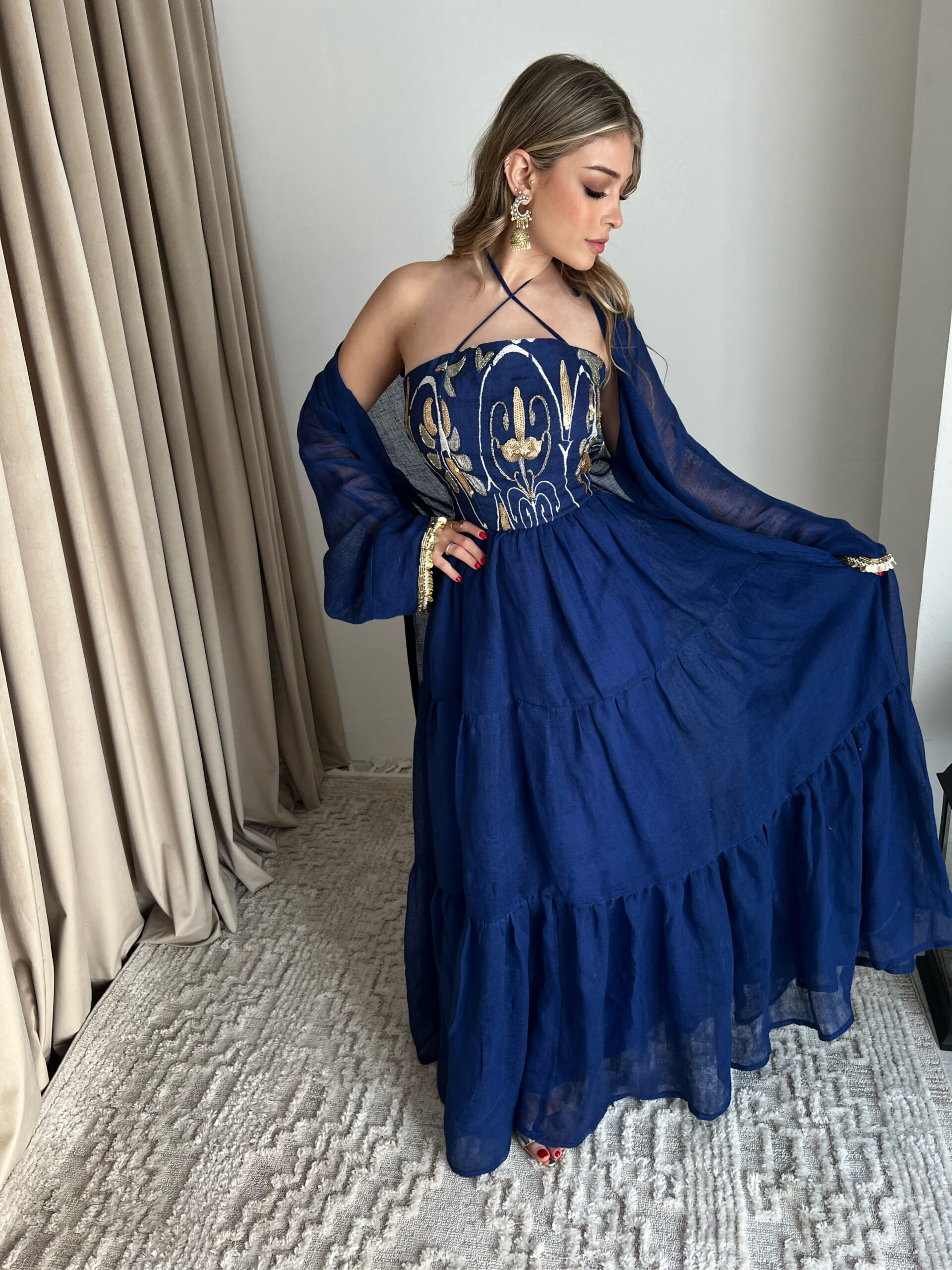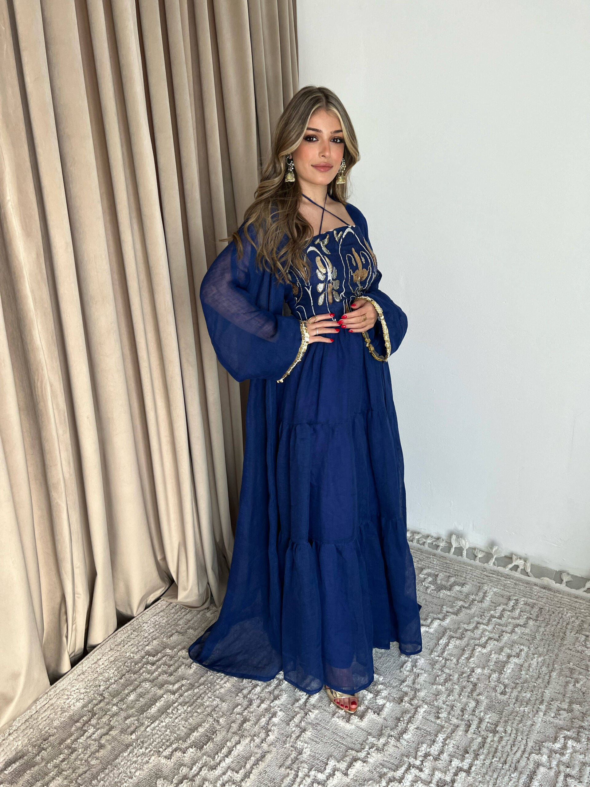 فستان مطرز ومشكوك مع بشت